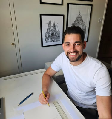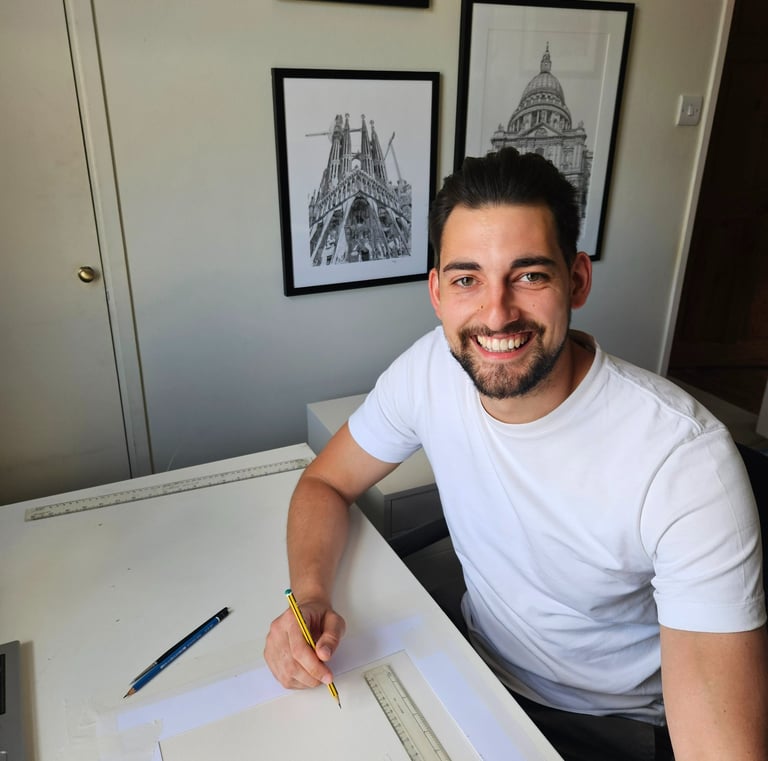 Fusing the traditional with a contemporary twist, Max Kerly captures the intricacy of architecture in minute detail.